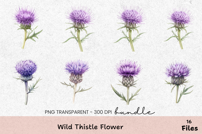 Unleash creativity with our Wild Thistle Flower Clipart Bundle, featuring exquisite floral designs perfect for nature-inspired projects. Ideal for digital scrapbooking, invitations, and more, these high-resolution images bring a touch of wild elegance to your creations. Transform your crafts with this versatile collection, designed for artists and DIY enthusiasts alike. Elevate your designs with the timeless beauty of thistle flowers, capturing the essence of nature's charm.