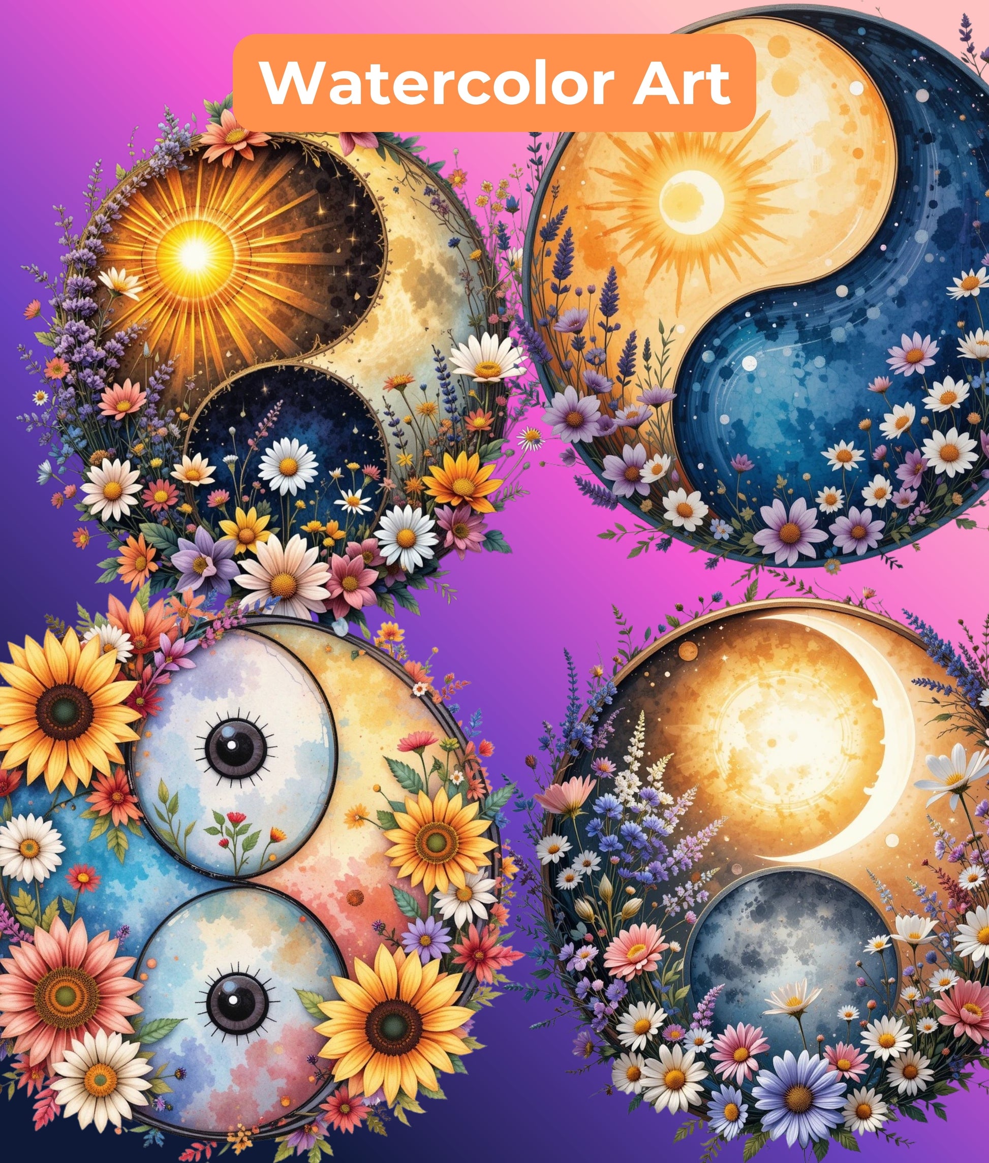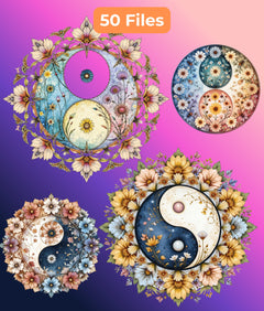 Wildflower Yin Yang Clipart Bundle