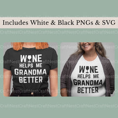 Sip with this Wine Helps Me Grandma Better SVG Bundle, featuring humorous wine quote designs, ideal for drinks quote crafts.