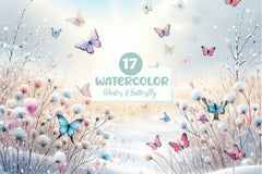 Flutter with this Winter & Butterfly Clipart Bundle, featuring cold season designs, ideal for winter nature crafts.