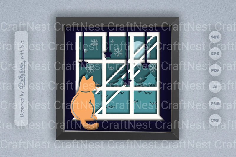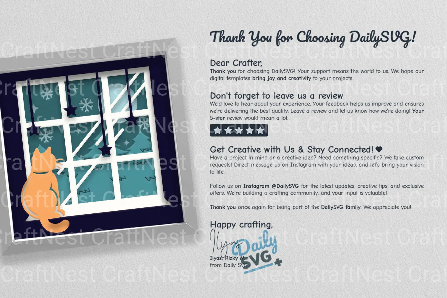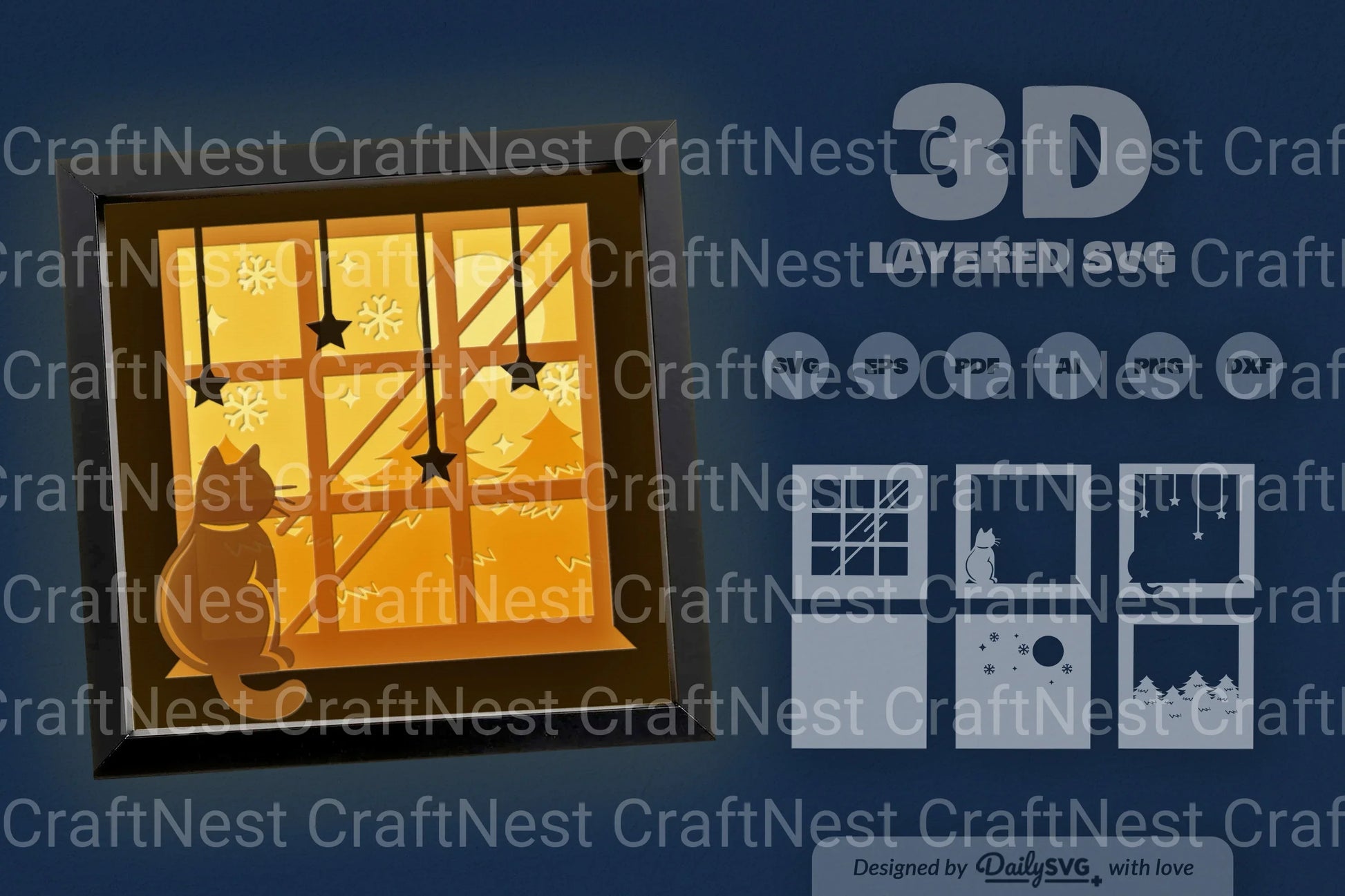 Transform your crafts with the Winter Cat on Window Papercut SVG Bundle, featuring intricate designs of cozy cats and winter scenes, perfect for seasonal decorations and unique gifts.
