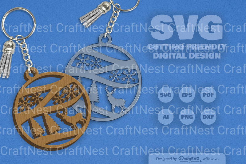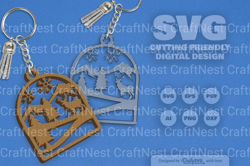 Enhance your winter crafts with the Winter Deer Keychain Clipart SVG Bundle, featuring charming deer designs perfect for seasonal projects and personalized gifts.