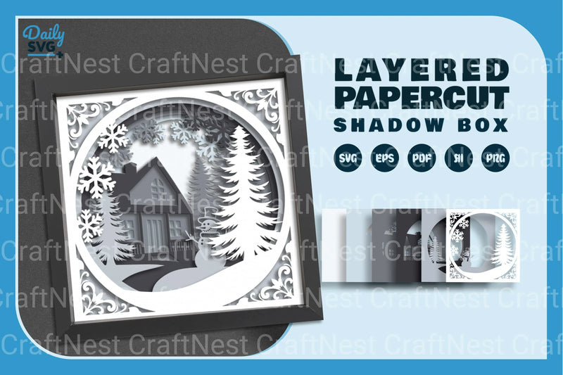Discover the enchanting Winter House Papercut SVG Bundle, perfect for creating cozy winter-themed crafts. This collection features intricate designs of charming winter houses, ideal for holiday decorations, greeting cards, and DIY projects. Elevate your seasonal crafts with these high-quality SVG files, designed for effortless cutting and crafting.