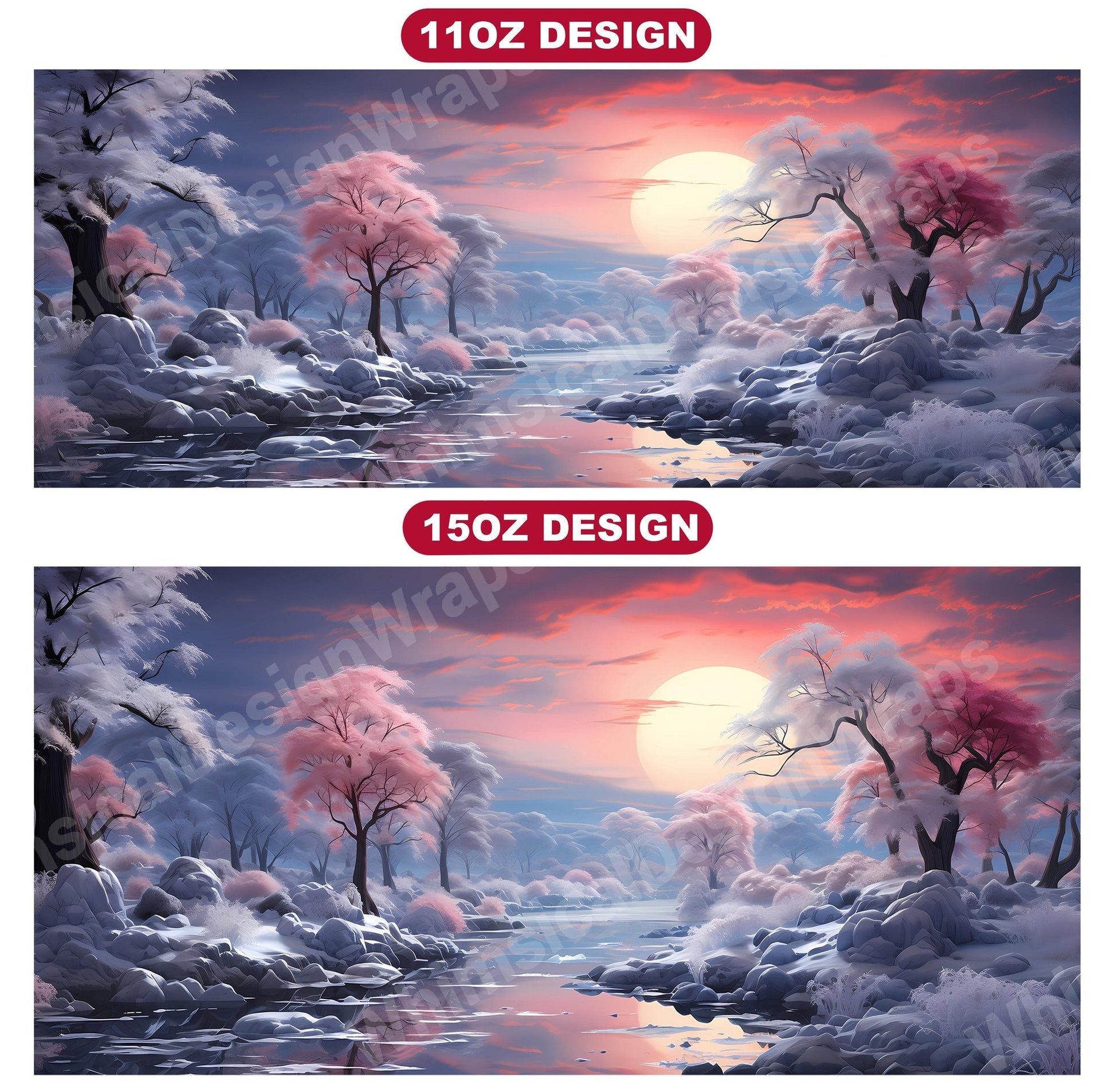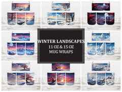 Immerse yourself in the tranquility of winter with our winter landscapes digital mug wraps. These breathtaking designs showcase snowy scenes and icy vistas, evoking a sense of peace and serenity that will transport you to a winter wonderland with every sip of your favorite hot beverage, making them a cozy addition to your mug collection.