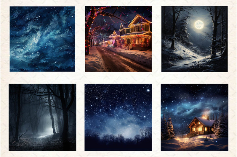 Dream with this Winter Nights Digital Paper, featuring cozy winter evening designs, perfect for seasonal crafts.