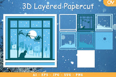 Transform your windows into a winter wonderland with our Winter Window Layered Papercut SVG Bundle. Perfect for festive home decor, this bundle offers intricate designs that capture the essence of the season, ideal for crafting unique holiday decorations.