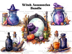 Add a touch of magic to your designs with our Witch Accessories clip art. These enchanting digital illustrations feature witch hats, broomsticks, cauldrons, and spell books, perfect for enhancing your Halloween-themed projects, mystical artwork, or witchy creations, providing a whimsical array of accessories to bring your witchy visions to life in vibrant detail.