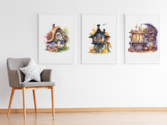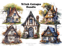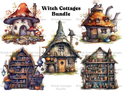 Discover the charm of mystical dwellings with our Witch Cottages clip art. These quaint digital illustrations showcase cozy cottages nestled in enchanted forests, adorned with mystical symbols and surrounded by magical flora, perfect for adding a touch of whimsical enchantment and rustic beauty to your designs, whether for fantasy landscapes, fairy tale scenes, or witchy creations, inviting viewers into a world of cozy witchy abodes and magical ambiance.
