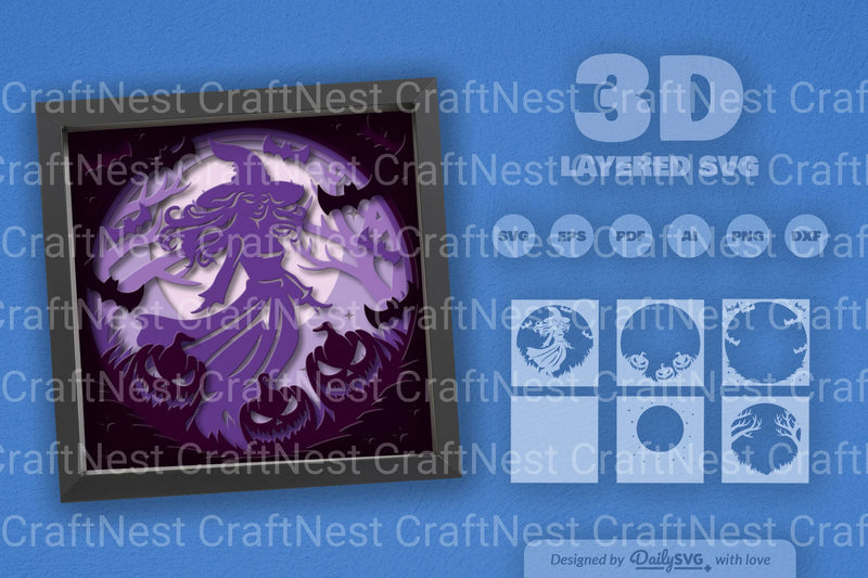 Enchant your Halloween crafts with the Witch in Halloween Night Papercut SVG Bundle. Perfect for creating spooky decorations, this bundle features intricate witch designs, ideal for papercutting, scrapbooking, and DIY projects. Elevate your Halloween decor with these bewitching SVG files.