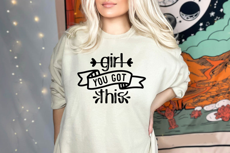 Woman with this Women SVG Bundle, featuring female designs, ideal for empowerment crafts.