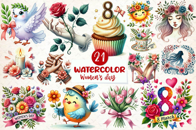 Celebrate with this Women's Day Clipart Bundle, featuring empowerment designs, ideal for celebration people crafts.