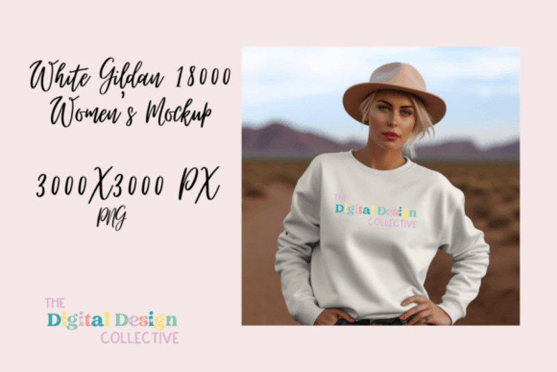 Women's White Gildan Sweater Mockup