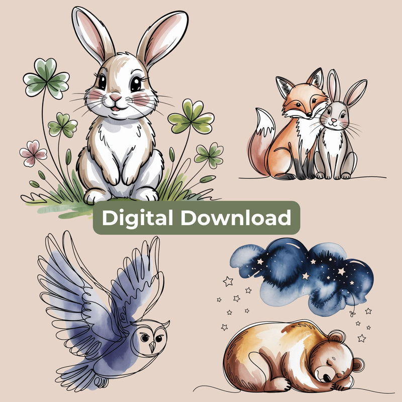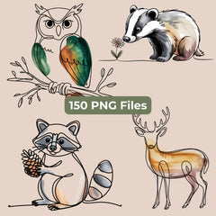 Unleash creativity with our Woodland Animals Doodle Clipart Bundle, featuring charming hand-drawn forest creatures perfect for whimsical nursery projects and enchanting DIY crafts.
