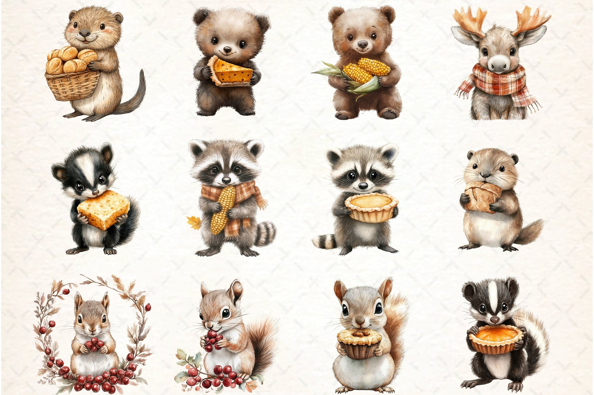 Enhance your designs with these adorable woodland animals, ideal for Thanksgiving invitations, scrapbooking, and more.