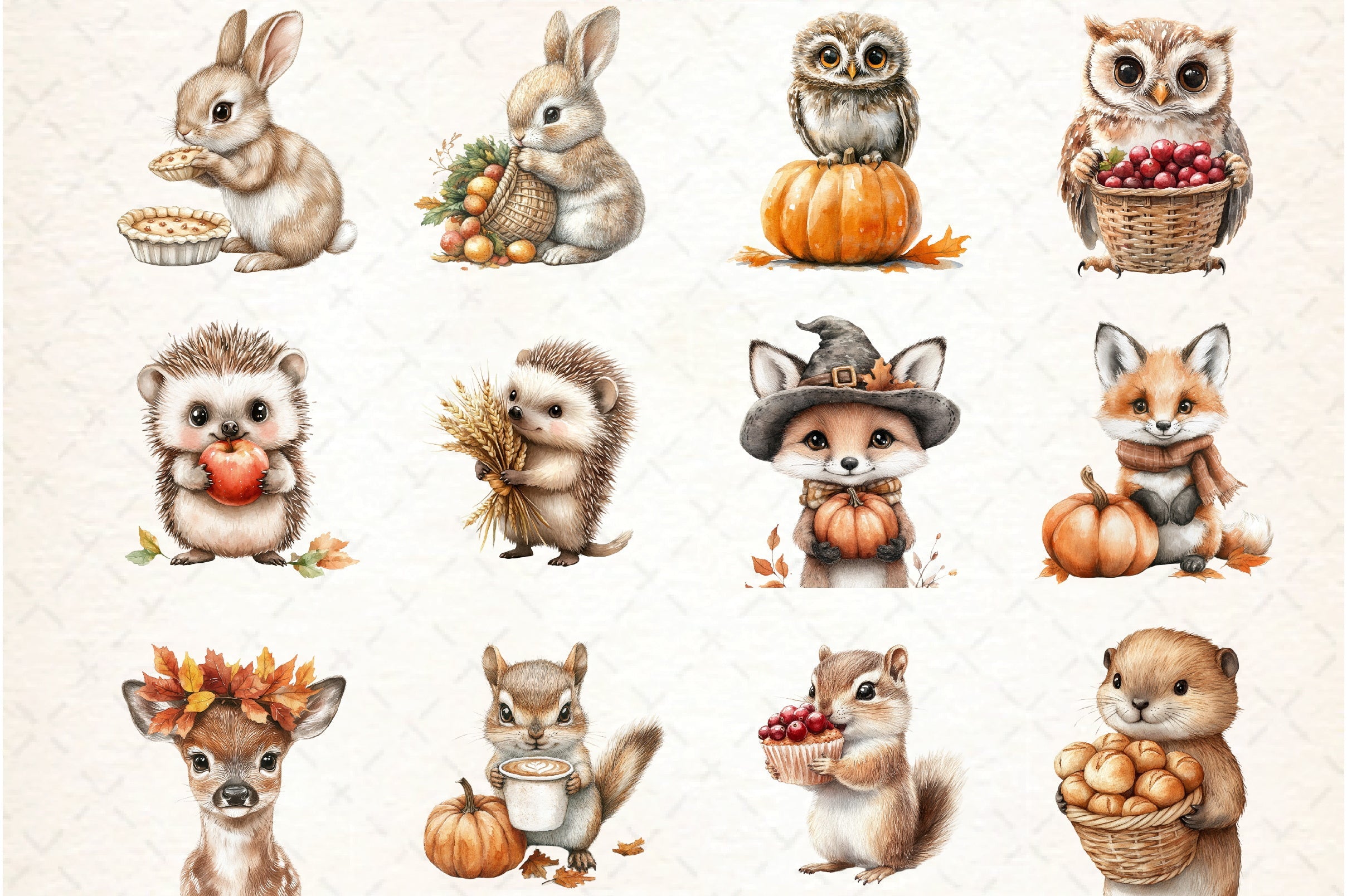 Unleash your creativity with our Woodland Baby Animals Clipart, designed to add a touch of whimsy to your Thanksgiving celebrations.