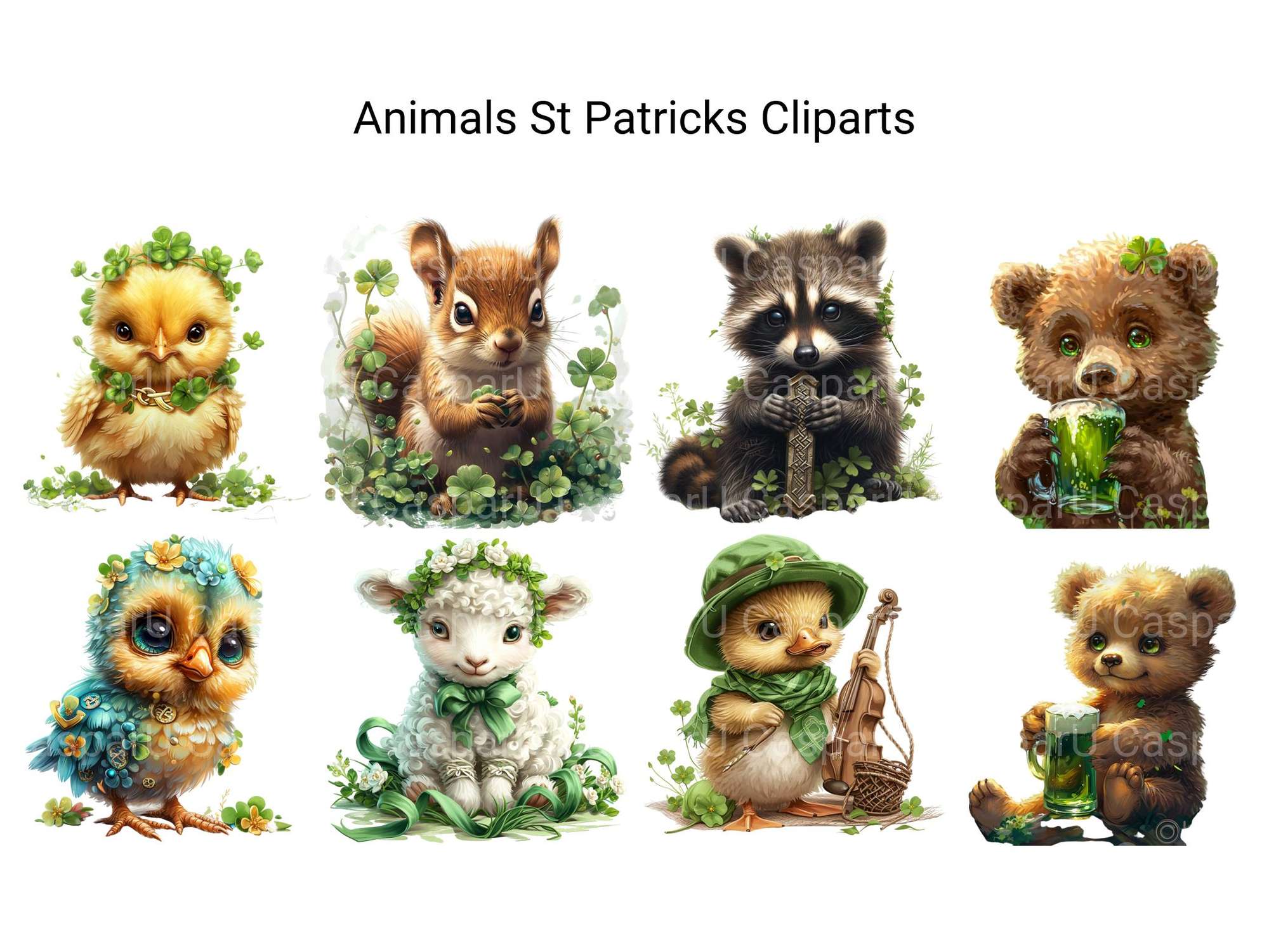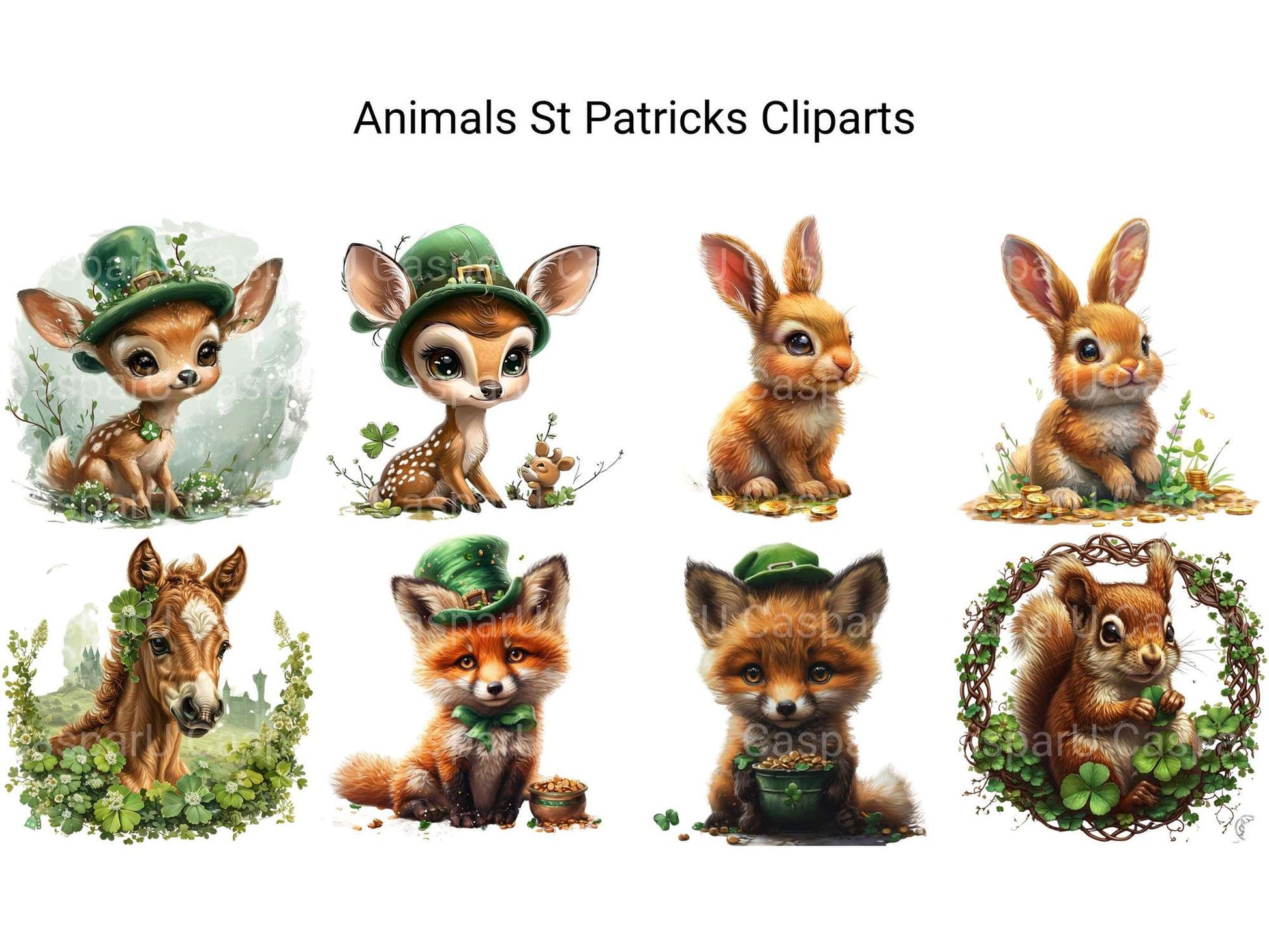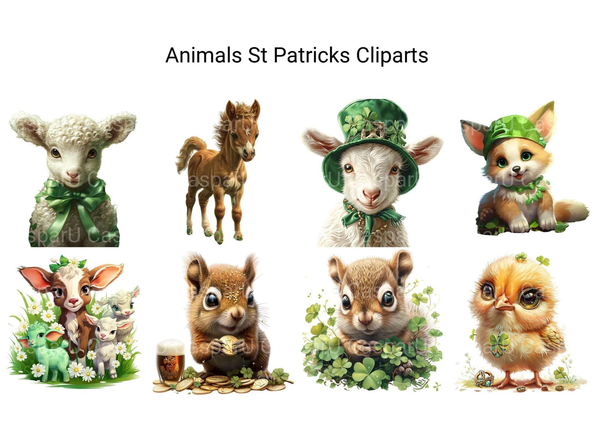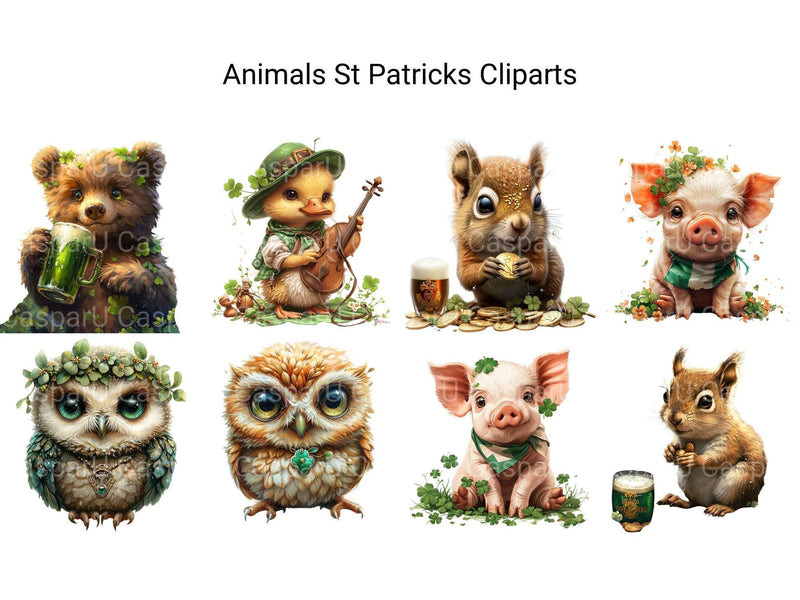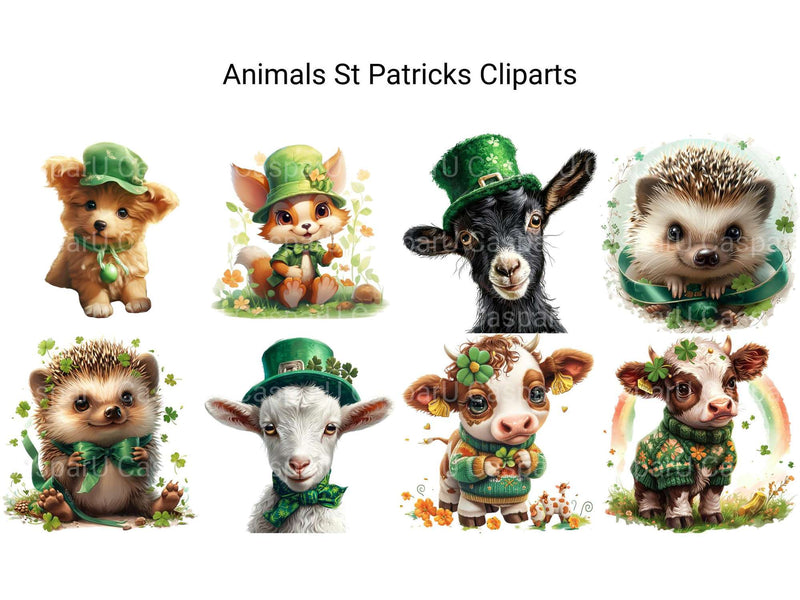 Luck out with this Woodland Farm Animals St Patrick’s Clipart set, blending farm animals with Irish charm, ideal for festive farm crafts.