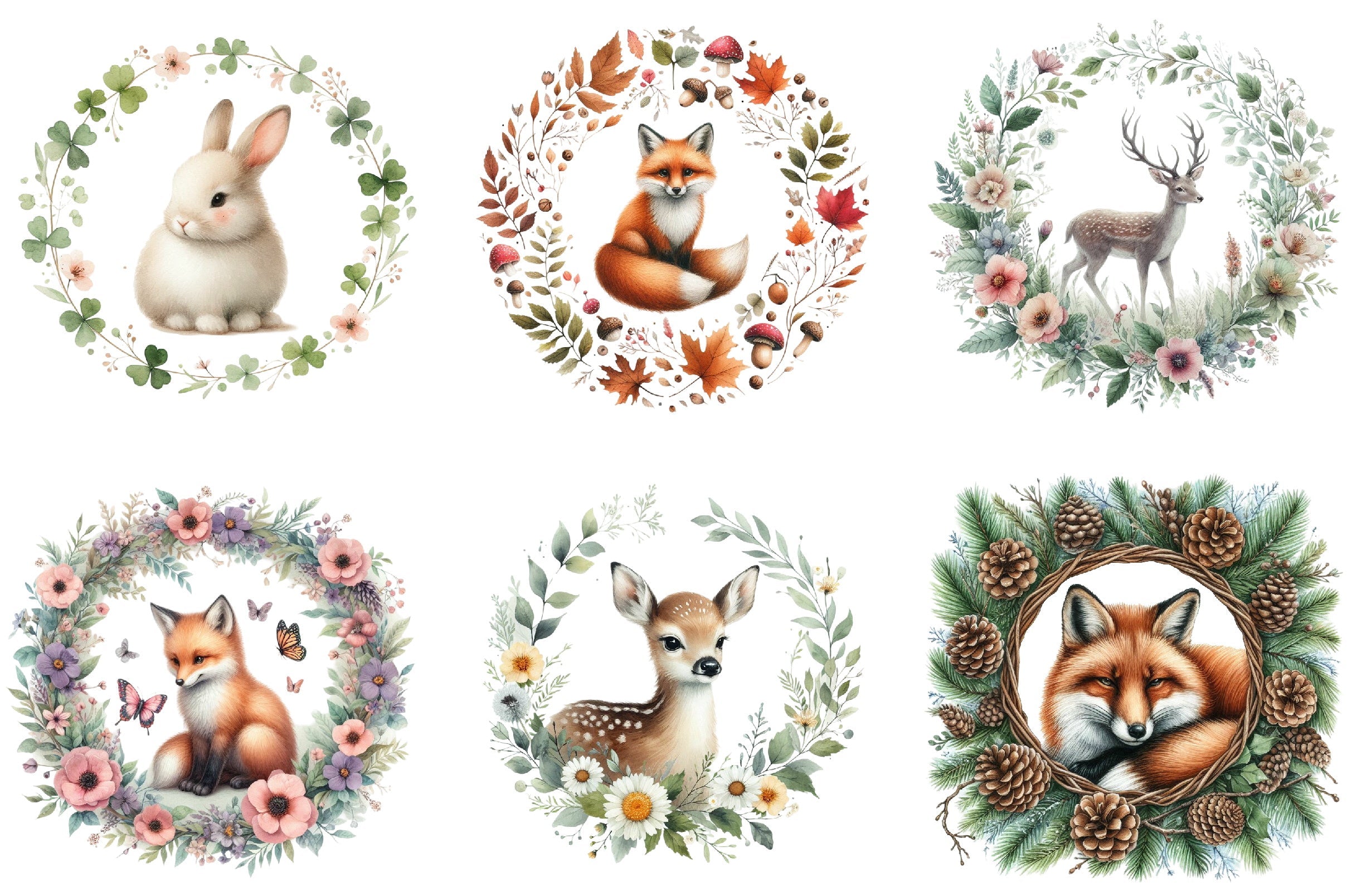 Explore the beauty of nature with the Woodland Forest Animals Clipart Bundle, featuring high-quality images of beloved forest animals for all your creative needs.