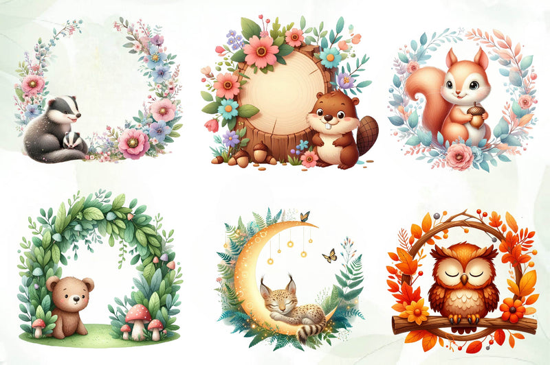 Frame with this Woodland Forest Animals Frame Clipart Bundle, featuring woodland animal frames, ideal for nature decorative crafts.