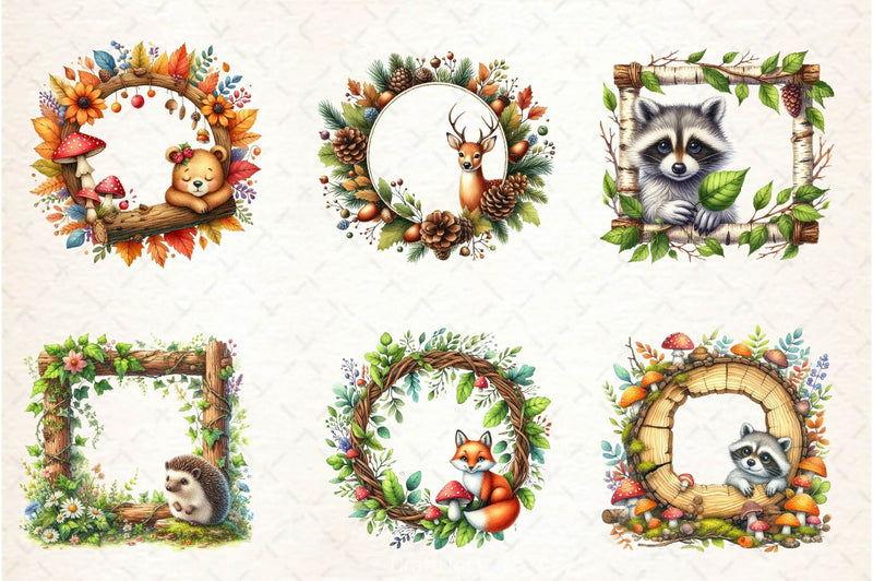Border with this Woodland Forest Animals Frame Clipart Bundle, featuring creature boundary designs, perfect for nature animal crafts.
