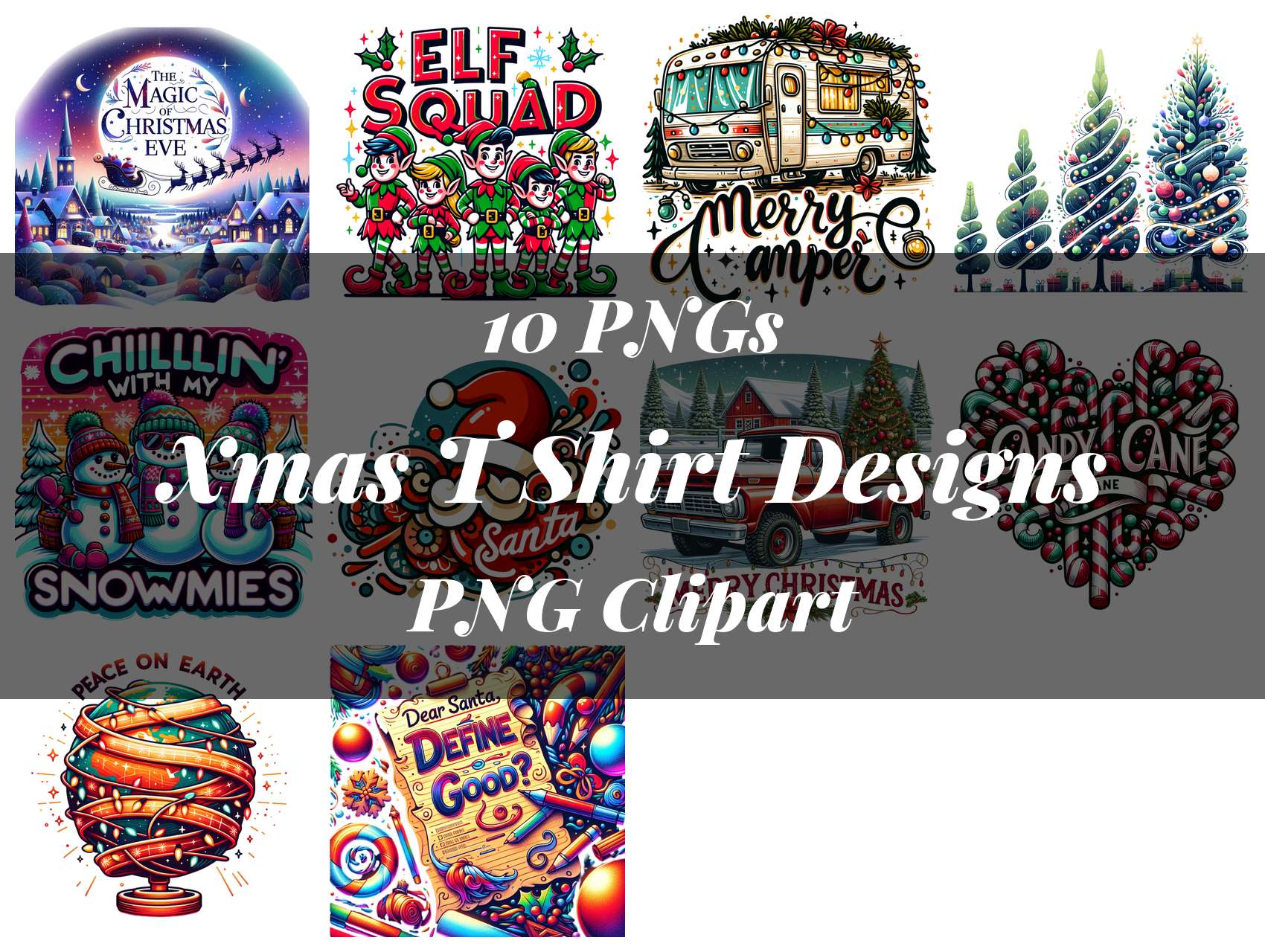 Wear the season with this Xmas T Shirt Designs Clipart set, featuring festive designs, ideal for holiday apparel.
