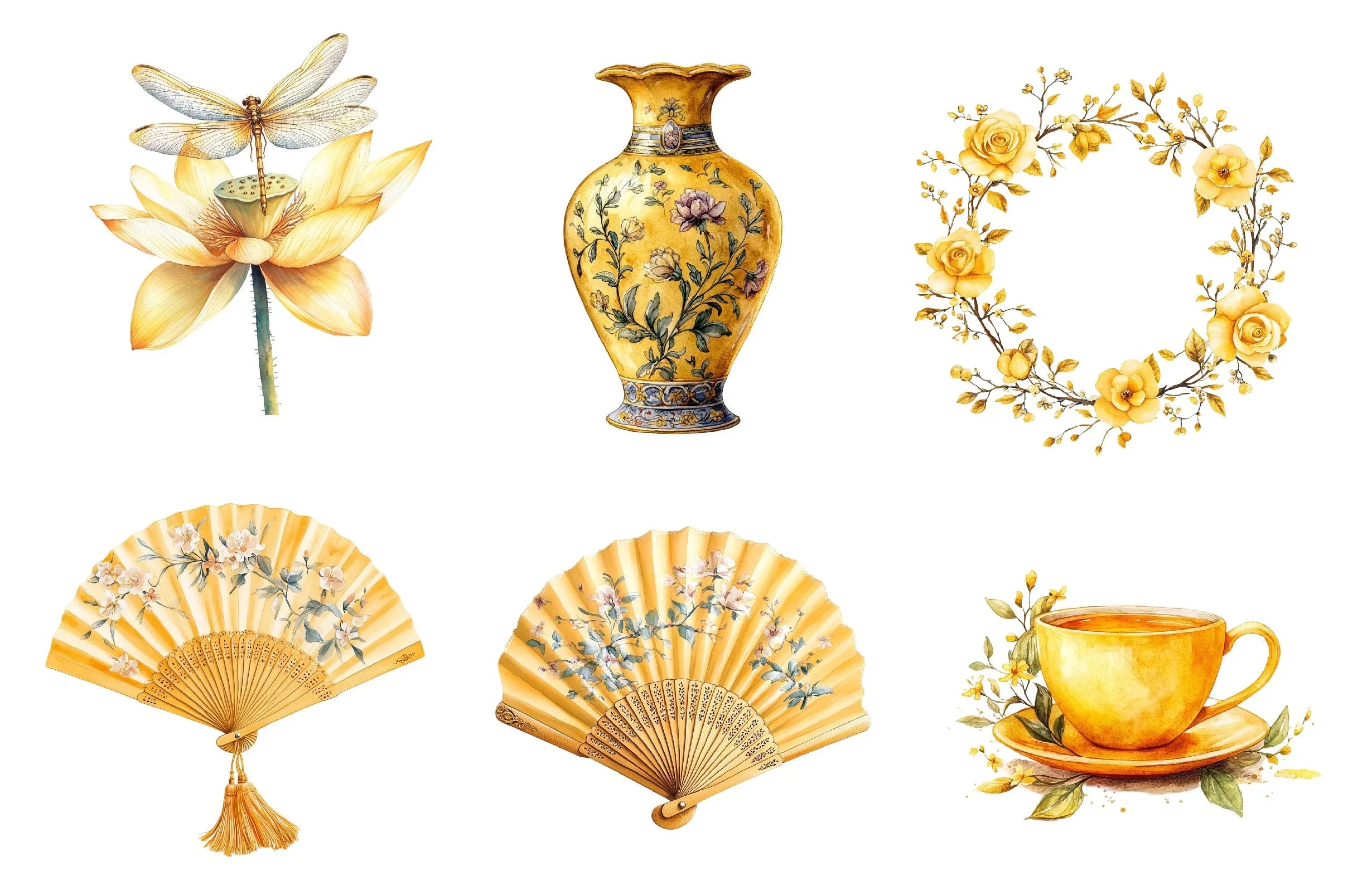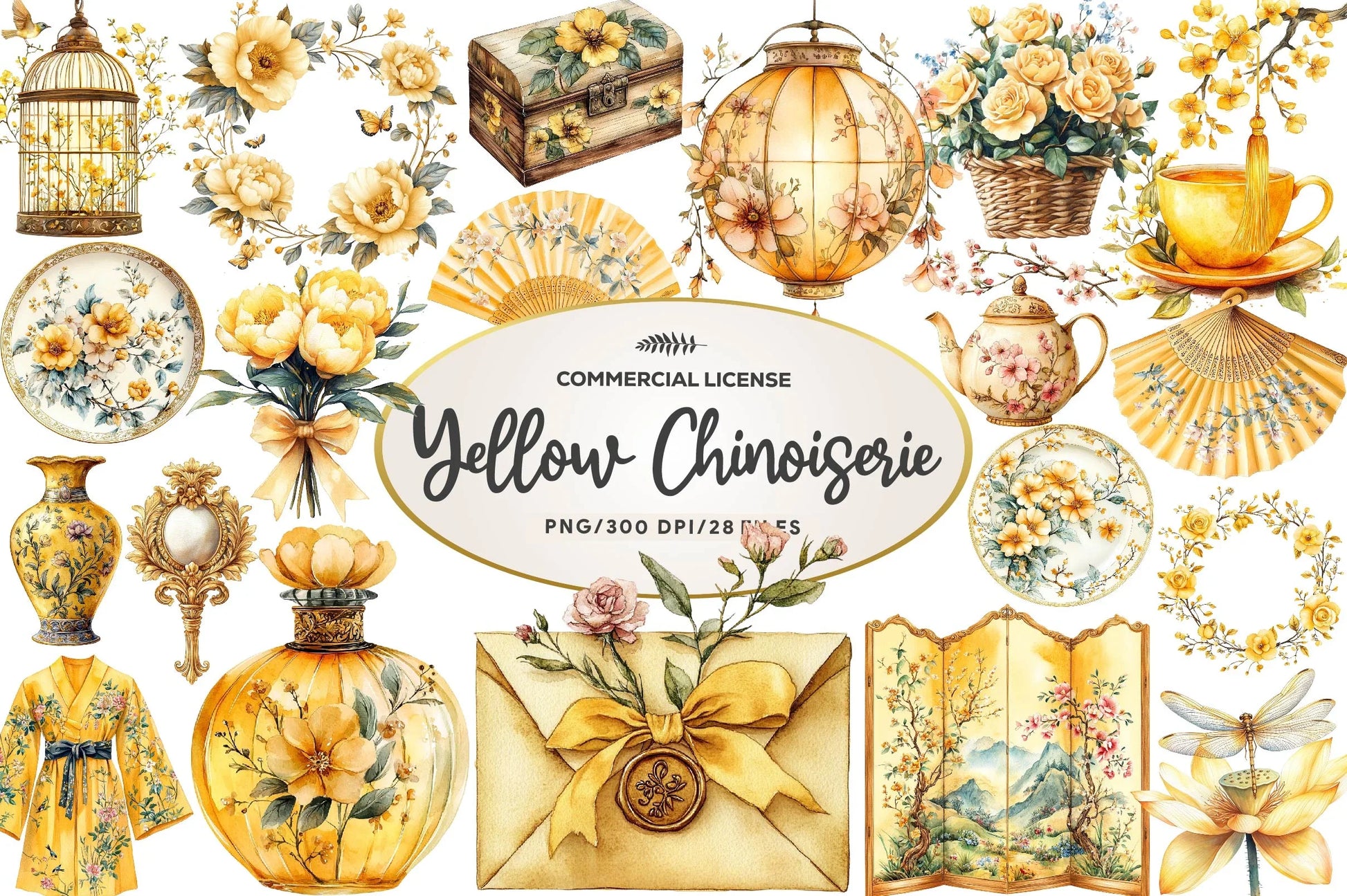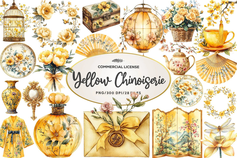 Celebrate Mother's Day with our Yellow Chinoiserie Clipart Bundle, featuring exquisite designs perfect for creating elegant cards, invitations, and crafts. Enhance your projects with these unique, high quality illustrations that capture the essence of timeless beauty and sophistication.