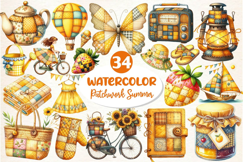 Quilt with this Yellow Patchwork Summer Clipart Bundle, featuring bright summer patchwork designs, perfect for cheerful seasonal crafts.