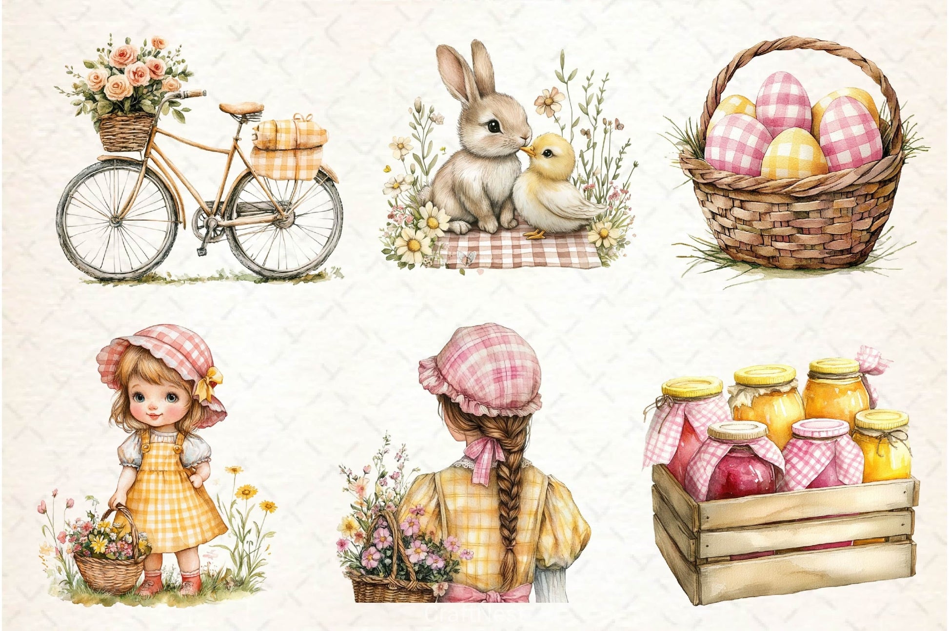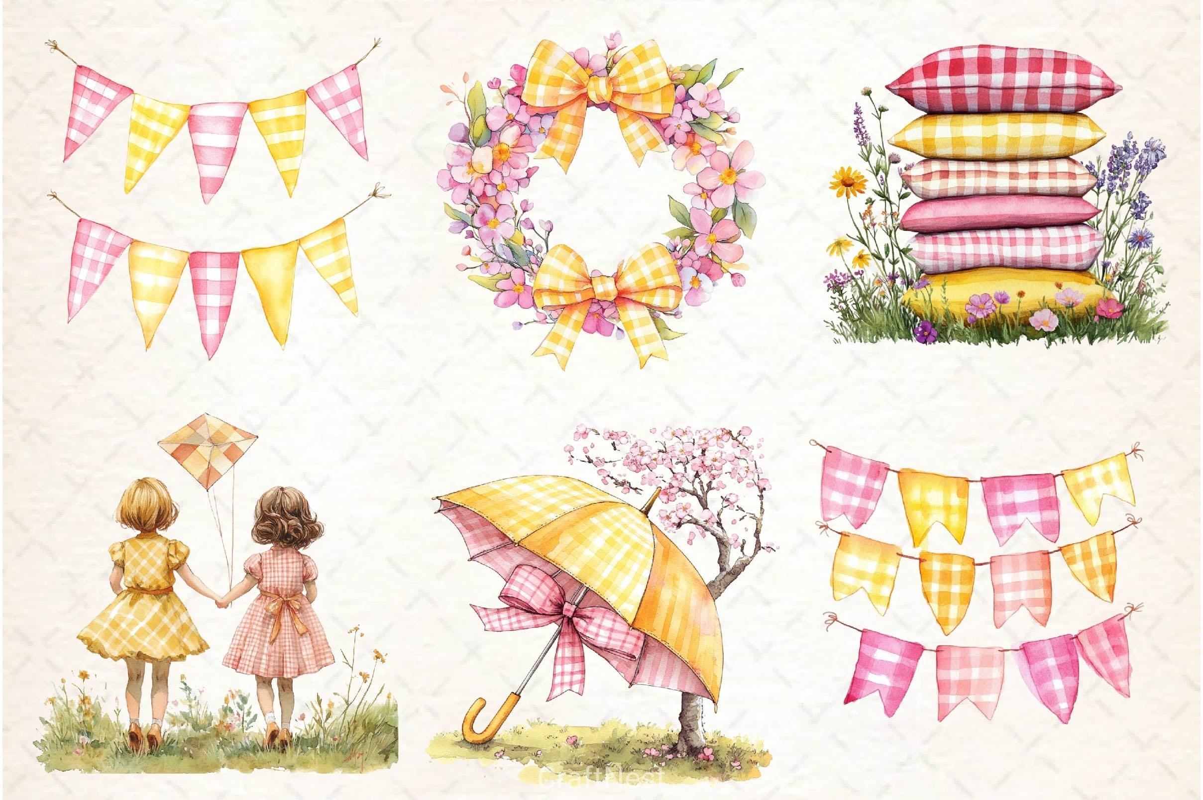 Cheerful yellow and pink gingham spring patterns for seasonal projects.